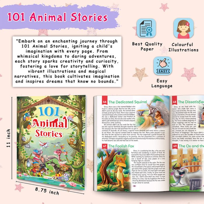 Introducing “101 Animal Stories” by GOWOO, an enchanting early learning storybook designed for kids aged 3-12. This captivating paperback, sized at 11×8.5 inches, brings together a delightful collection of classic animal tales that are both educational and entertaining. Each story is thoughtfully crafted to impart valuable lessons, fostering moral development, and sparking imagination in young minds. With vibrant illustrations accompanying engaging narratives, this book is perfect for bedtime reading, classroom learning, or quiet time. “101 Animal Stories” not only introduces children to the wonders of the animal kingdom but also encourages a love for reading and learning. The tales are carefully selected to teach essential values such as kindness, courage, and friendship, making it an ideal companion for parents and educators alike. This storybook is more than just a collection of tales; it’s a tool for developing critical thinking and emotional intelligence in children. Encourage your child’s growth and curiosity with this delightful collection of animal adventures that will be cherished and revisited for years to come. GOWOO’s “101 Animal Stories” is a treasure trove of timeless stories that will ignite a lifelong love for storytelling and learning in every young reader.