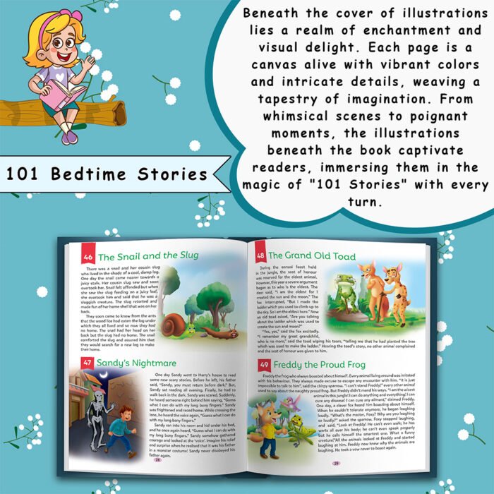 “Introducing the perfect companion for sleepyheads everywhere: the ‘101 Bedtime Stories’ book for kids by GOWOO. Sized at a cozy 11*8.5 inches, this enchanting anthology is a treasure trove of nighttime tales, promising to whisk young readers off to dreamland night after night. With 101 captivating stories to choose from, each page invites children to embark on a new adventure before they drift off to sleep. From magical kingdoms to far-off galaxies, from whimsical creatures to courageous heroes, there’s something to capture every imagination within the pages of this delightful collection. Crafted with care and illustrated with whimsy, these bedtime stories are sure to become cherished favorites for both children and parents alike. Soothing and reassuring, they create the perfect end to each day, fostering a love for reading and storytelling that will last a lifetime. Make bedtime the highlight of the day with the ‘101 Bedtime Stories’ book for kids by GOWOO. Let the magic of storytelling fill the nighttime air as you embark on a journey through the land of dreams together.”