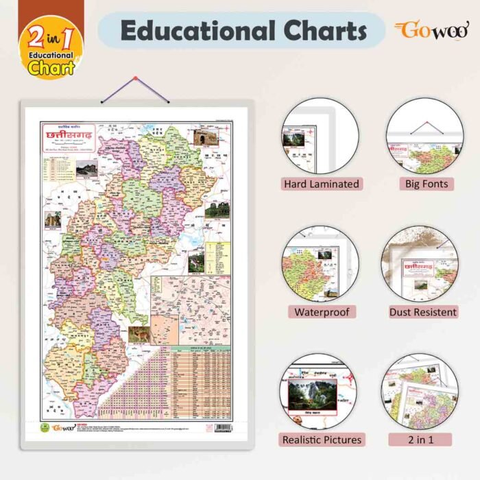 Be the first to review “2 in 1 chattisgarh political and physical map in hindi”
