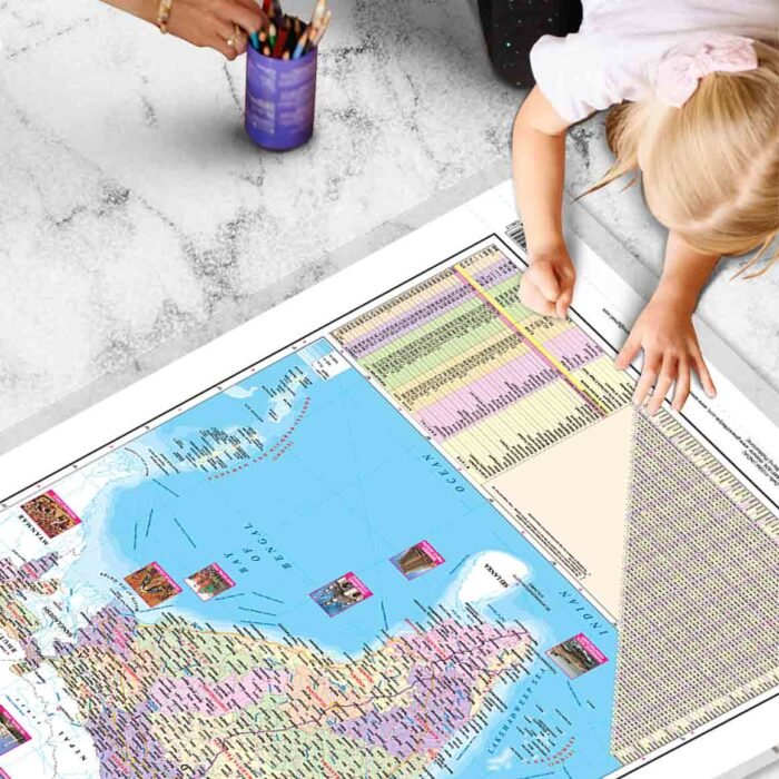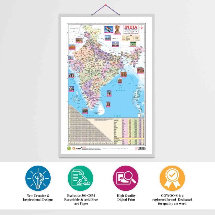 Perfect for homeschooling, this chart is an engaging visual aid for students of all ages. It?s large size and durable construction make it ideal for interactive classroom discussions and individual study sessions. Enhance your understanding of India’s political and physical geography with this comprehensive 2 in 1 chart.