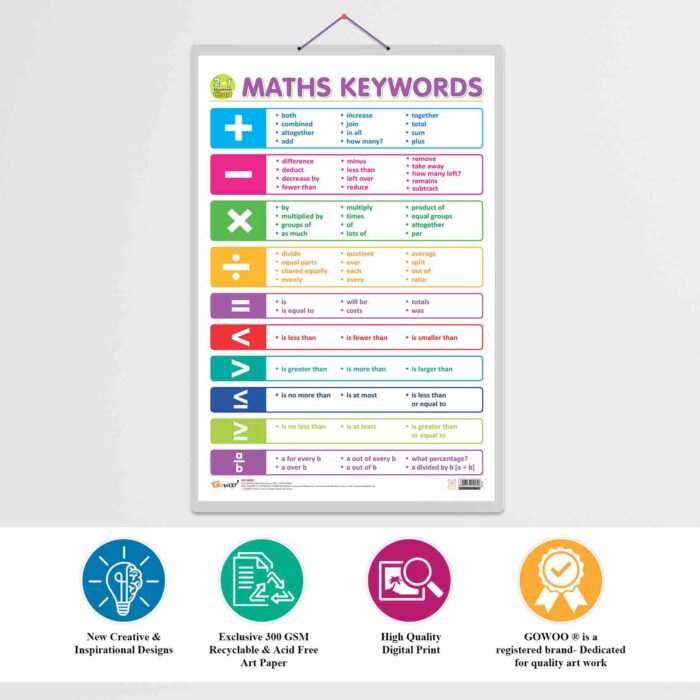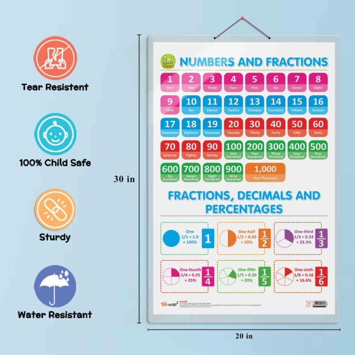 Whether you’re a teacher, parent, or student, our 2-in-1 Number & Fractions and Maths chart is invaluable for mastering numerical skills. It is an educational and attractive piece of home decor, adding a vibrant touch to any learning space.