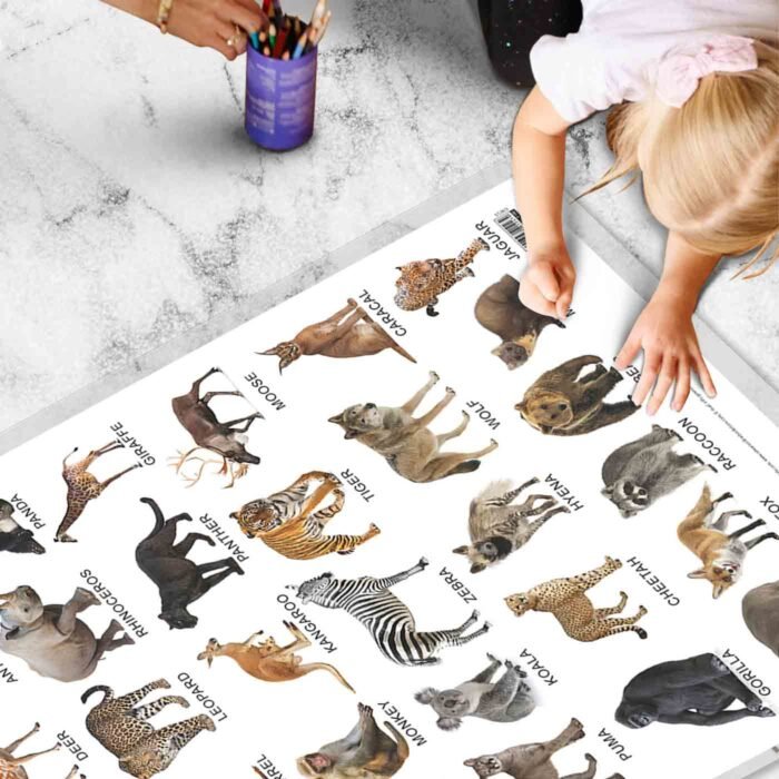 This 2-in-1 Wild and Farm Animals & Pets Chart is an excellent resource for homeschooling, kindergarten, and nursery students. It engages children’s imagination, promotes language development, and expands their knowledge of the animal world. Bring the wonders of nature into your learning space with this captivating chart.