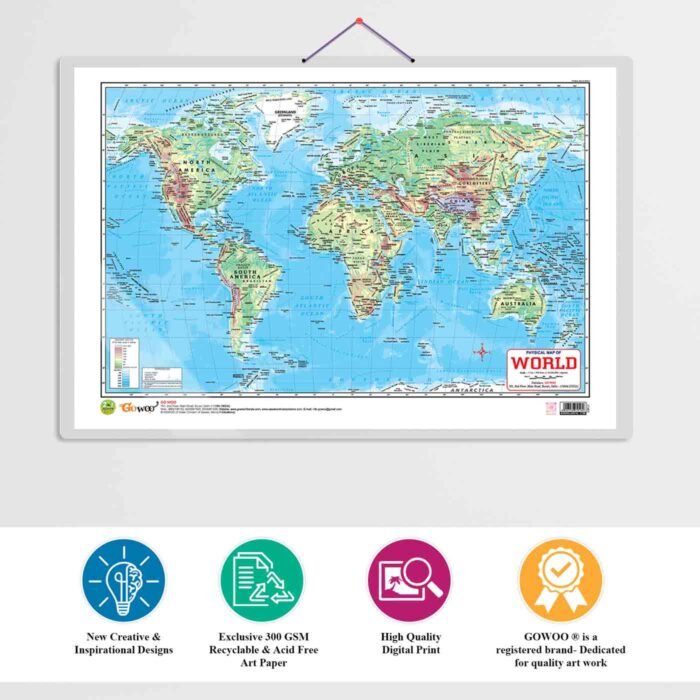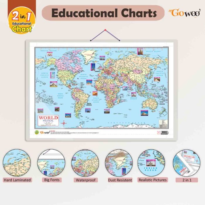 Introducing our 2-in-1 World Political and Physical Map Chart in English, a versatile and essential educational tool for exploring the world?s geography. Measuring 20″x30″ inches, this chart is designed to provide a comprehensive and visually appealing representation of global geography.