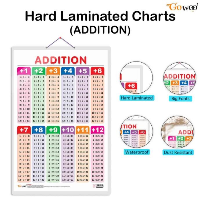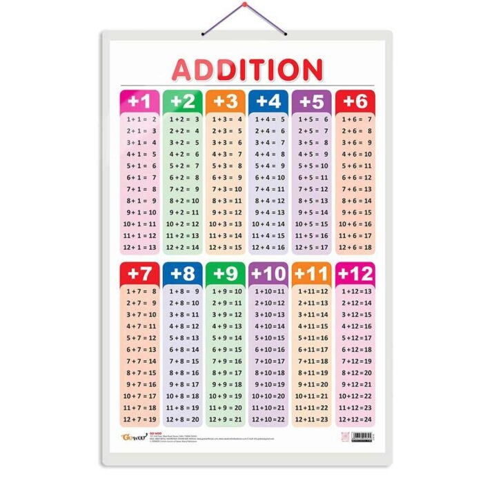 Introduce the concept of addition to young learners with this captivating Addition wallpaper chart. Measuring 20″x30″ inches, it offers a visually appealing and easily readable display of addition operations.