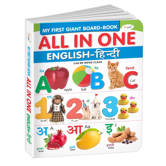 The GOWOO’s All IN ONE BOARD BOOK (English – Hindi) is an exceptional early learning resource crafted to foster bilingual development in toddlers. This engaging board book, measuring 11×8.5 inches, is designed to captivate young learners with its vibrant illustrations and interactive content. Perfect for children ages 1-5, this book introduces essential concepts and vocabulary in both English and Hindi, offering a comprehensive approach to early language acquisition. Each page of this sturdy board book is thoughtfully designed to provide educational value while ensuring durability for little hands. The bilingual format supports dual-language learning, making it an invaluable tool for parents and educators aiming to enhance cognitive and language skills in young children. Through colorful pictures and simple text, toddlers are encouraged to explore, learn, and recognize foundational concepts, including letters, numbers, shapes, and everyday objects. Whether used at home or in an educational setting, this book offers a fun and interactive way to build early literacy skills. The All IN ONE BOARD BOOK not only promotes early language development but also supports cognitive growth, making it a must-have addition to any child?s early education toolkit.