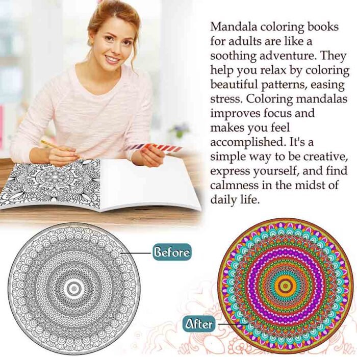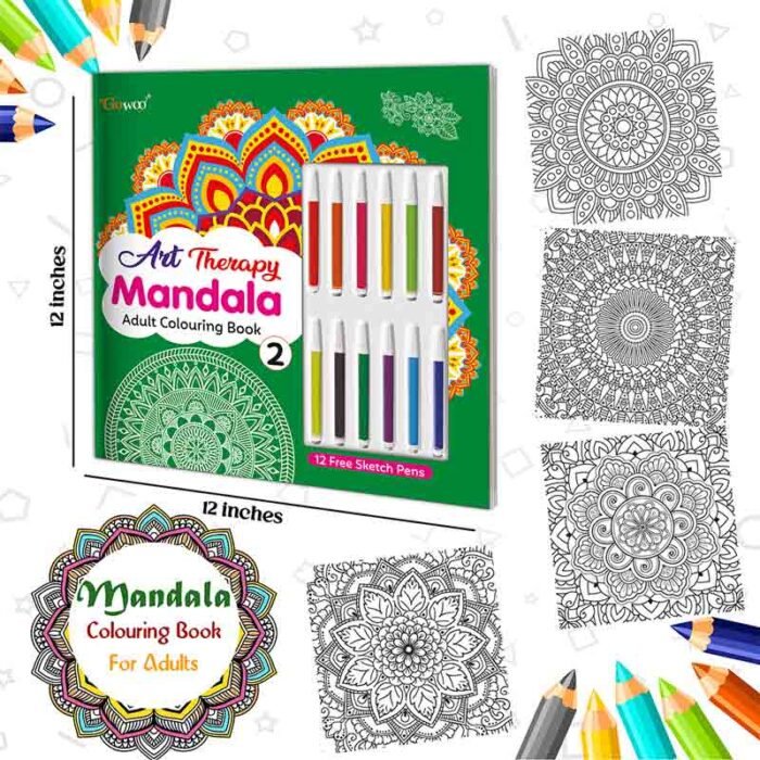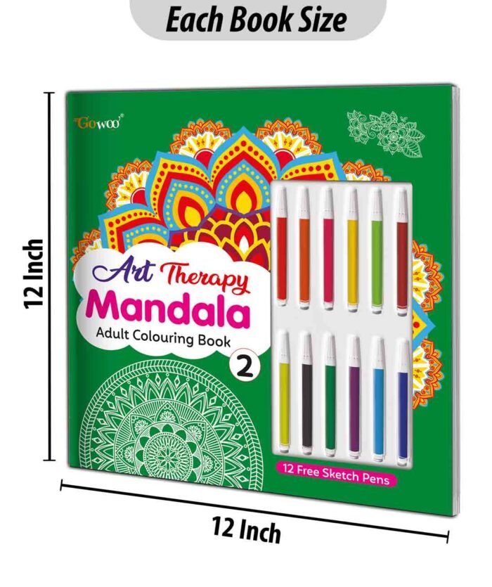 Immerse yourself in the soothing world of mandalas with the Art Therapy Mandala Adults Coloring Book-2 by GoWoo!Measuring a generous 12 x 12 inches, this coloring book provides ample space for adults to explore intricate mandala designs and experience the therapeutic benefits of coloring. Each page is meticulously crafted to promote relaxation, mindfulness, and stress relief.