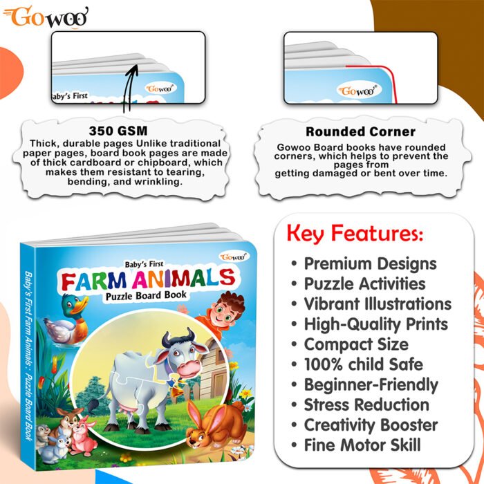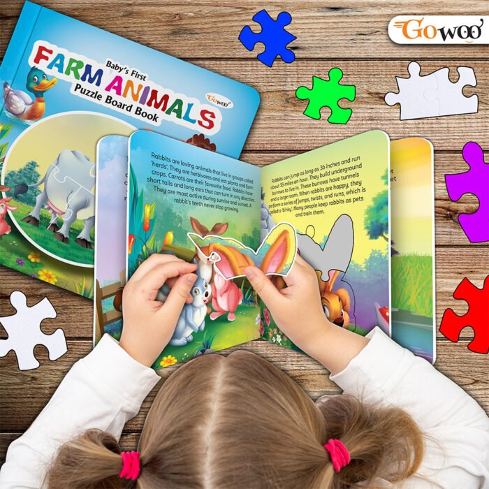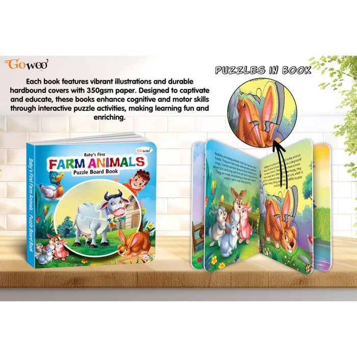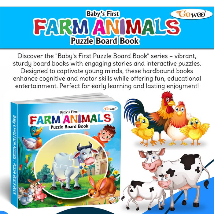 Introducing “Baby’s First Farm Animals Puzzle Board Book” by GOWOO, a captivating educational board book designed to engage young minds aged 3-12 with interactive learning through puzzles. This delightful book measures 6.75×6.75 inches and features three engaging jigsaw puzzles, each showcasing colorful illustrations of farm animals. Ideal for toddlers and young children, this board book combines the joy of storytelling with the cognitive benefits of puzzle-solving. Each puzzle encourages developmental skills such as hand-eye coordination, problem-solving, and shape recognition. Through playful interaction with farm animal themes, children learn about different animals and their habitats in an entertaining and educational way. GOWOO’s commitment to quality ensures that each page is sturdy and durable, perfect for little hands to explore independently or with guidance from parents or educators. Whether at home or on the go, “Baby’s First Farm Animals Puzzle Board Book” promises hours of fun and learning, making it an essential addition to any child’s early learning library.