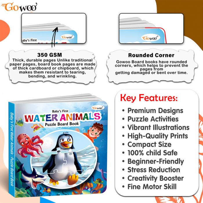 Introducing “Baby’s First Water Animals Puzzle Board Book” by GOWOO, an enriching educational experience tailored for children ages 3-12. This 6.75×6.75 inch board book features three captivating jigsaw puzzles, each depicting colorful illustrations of aquatic animals. Designed to foster early learning through interactive play, children explore creatures like dolphins, sea turtles, and fish. The puzzle-solving activities not only entertain but also promote cognitive skills such as problem-solving and spatial awareness. Crafted with durable board pages by GOWOO, this book ensures safety and durability, perfect for young readers to explore independently or with guidance. “Baby’s First Water Animals Puzzle Board Book” sparks curiosity about marine life and provides a fun, engaging way to learn about underwater creatures, making it an ideal addition to any child’s educational library.