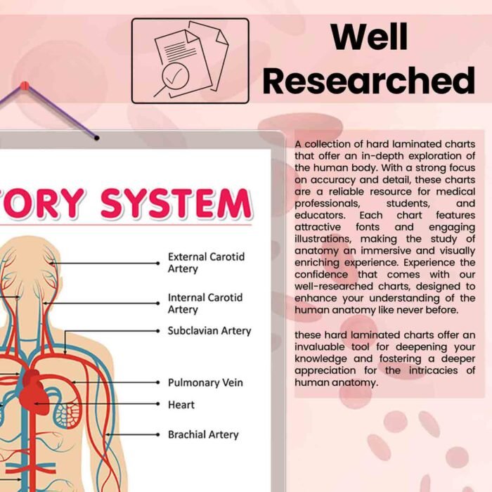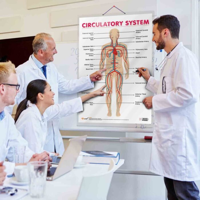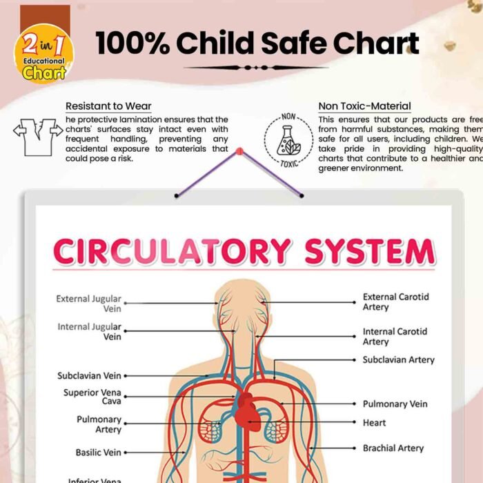 GOWOO presents CIRCULATORY SYSTEM CHART in 20″ x 30″ inches. Unravel the complexities of the human circulatory system with our informative chart, meticulously crafted to offer a comprehensive exploration of the vascular anatomy. This educational resource presents detailed diagrams of all the internal veins and arteries within the human body, accompanied by clear labeling of each blood vessel’s name. The chart delves into the remarkable interconnectedness of the circulatory network, emphasizing the vital role veins and arteries play in maintaining proper blood flow and transporting essential substances throughout the body. Learners will gain a profound understanding of the intricacies of the vascular system and its crucial contribution to overall health. Designed to inspire a passion for anatomical inquiry, this chart ignites curiosity among learners. Its hard-laminated surface ensures endurance, making it a reliable study aid for classrooms and study spaces. As learners delve into the intricacies of the circulatory system, they will develop a profound appreciation for the marvels of human physiology and the essential role of veins and arteries in sustaining life.