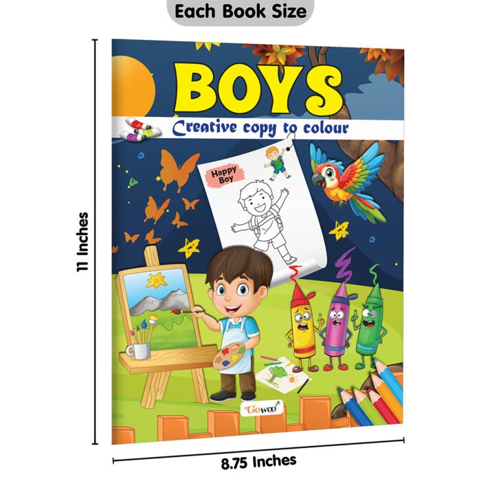 Creative Copy To Colour Boys by Gowoo is an exciting and engaging coloring book designed especially for boys, filled with a variety of fun and adventurous illustrations. Measuring 11.5 x 8 inches, this book offers plenty of space for young artists to trace, color, and explore scenes that include sports, vehicles, superheroes, and more. With bold and simple illustrations, children can develop their fine motor skills, color recognition, and creativity. Perfect for early learners, this book makes coloring both enjoyable and educational.