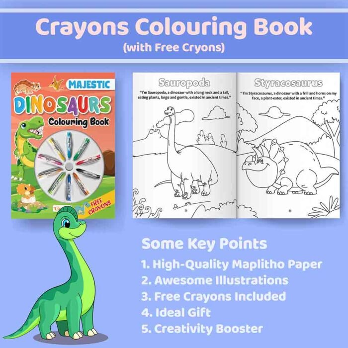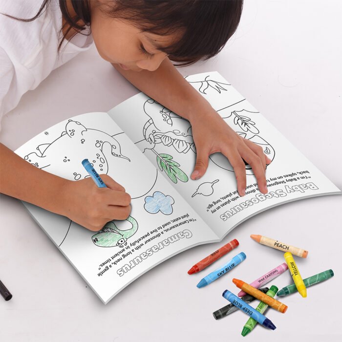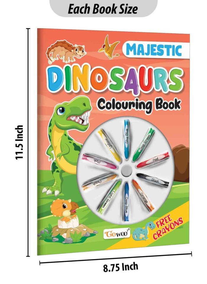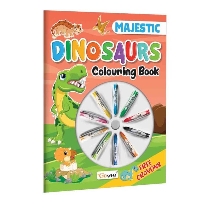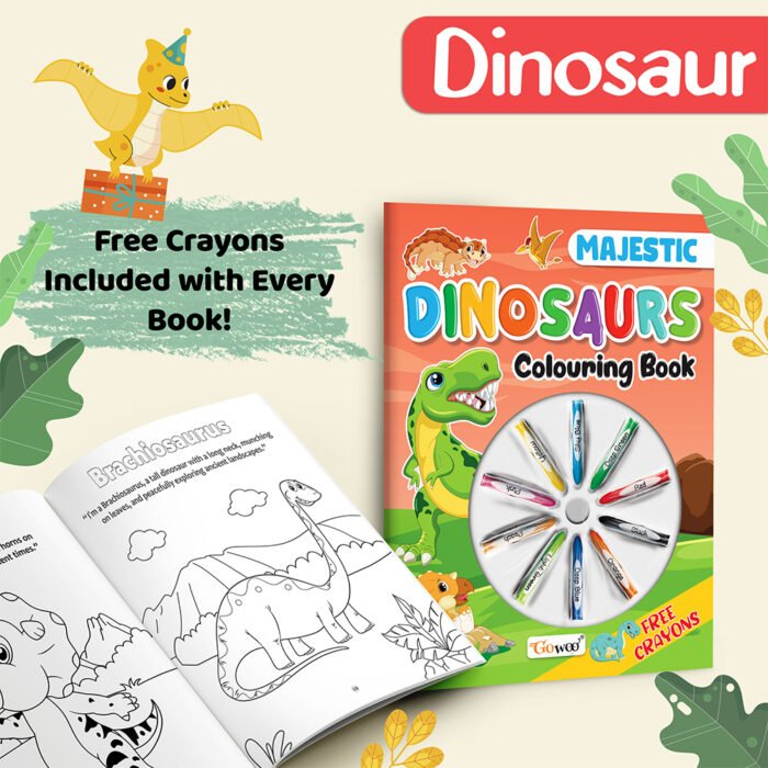 Step back in time to the prehistoric era with the Dinosaurs Coloring Book with Free Crayons by GoWoo!Roaring with excitement, this coloring book transports children to a world ruled by mighty dinosaurs, where they can unleash their creativity and bring these ancient creatures to life. Each page is teeming with detailed illustrations of ferocious T-Rexes, towering Brachiosauruses, and other fascinating dinosaurs, waiting to be colored with vivid imagination.