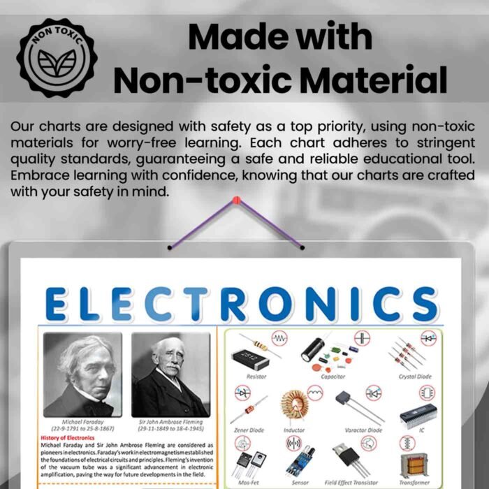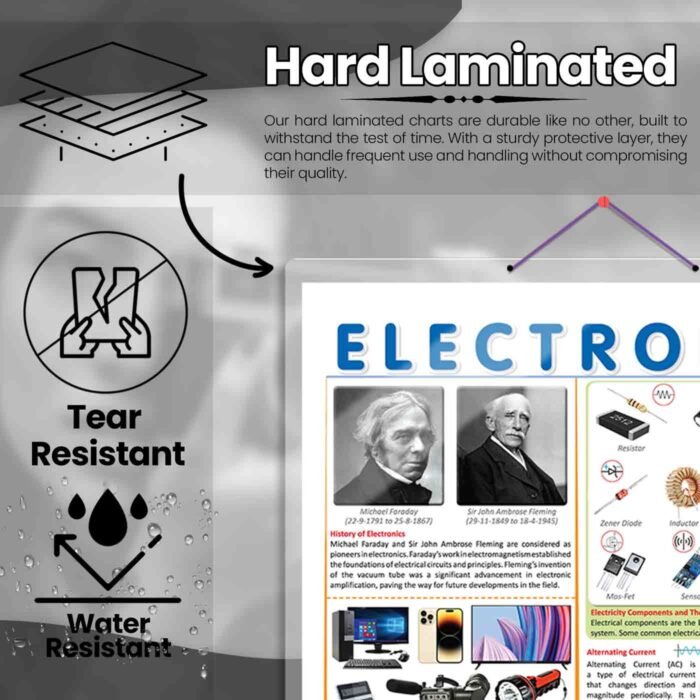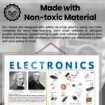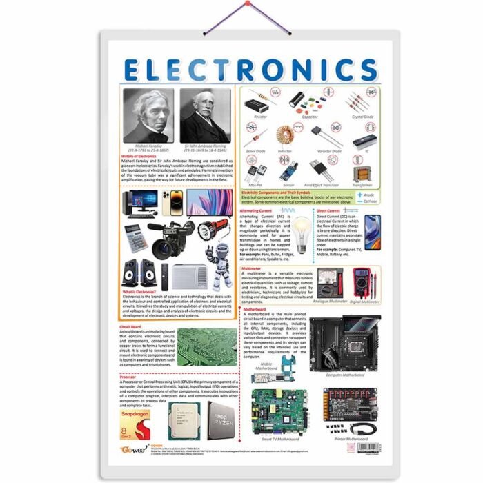 GOWOO presents THE ELECTRONICS CHART in 20″ x 30″ inches. Unravel the mysteries of electronics with our informative poster, thoughtfully designed to provide learners with an accessible and engaging visual guide. The chart presents a comprehensive history of electronics, offering a captivating glimpse into its transformative journey. For learners seeking to understand electronic circuits and components, the chart showcases detailed illustrations of electricity components, accompanied by their corresponding symbols. This comprehensive reference empowers learners to recognize and interpret these essential elements. The chart introduces learners to alternative current (AC) and direct current (DC) concepts, providing clear explanations of their unique characteristics and applications in everyday electronic devices. Additionally, a visually appealing depiction of a multimeter enhances learners’ understanding of its role in measuring electrical values accurately. Ideal for classrooms, laboratories, and self-guided study, this chart fosters curiosity and enthusiasm for electronics. It’s high-quality pictures and well-organized information inspire learners to explore the fascinating world of electronics and uncover the secrets behind modern technology.