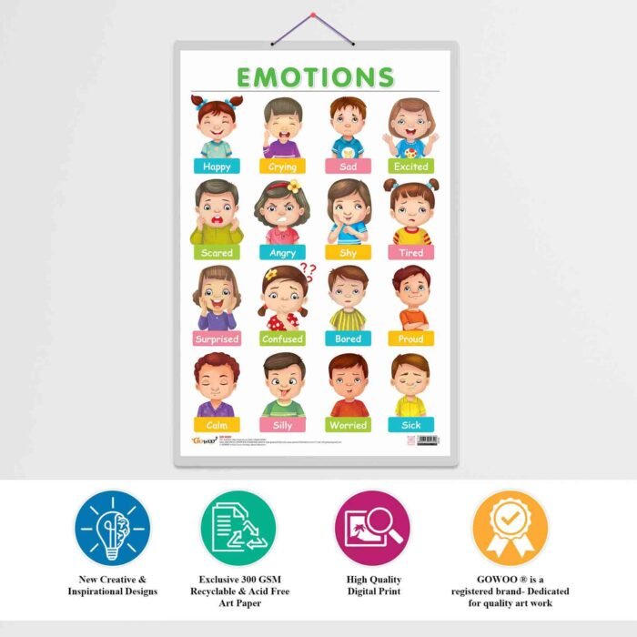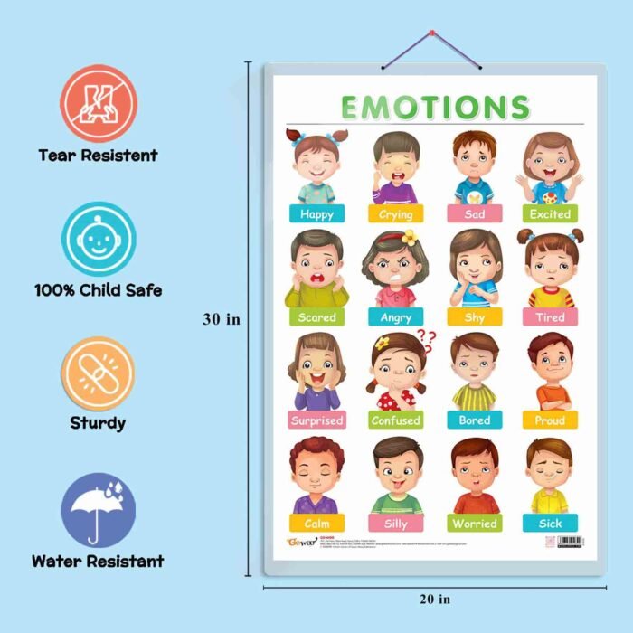 Introducing our “Emotions” chart, designed to help students explore and understand a range of emotions in a fun and interactive way. This chart measures 20″x30″ inches and is the perfect addition to any learning environment, whether it’s homeschooling, kindergarten, or nursery.