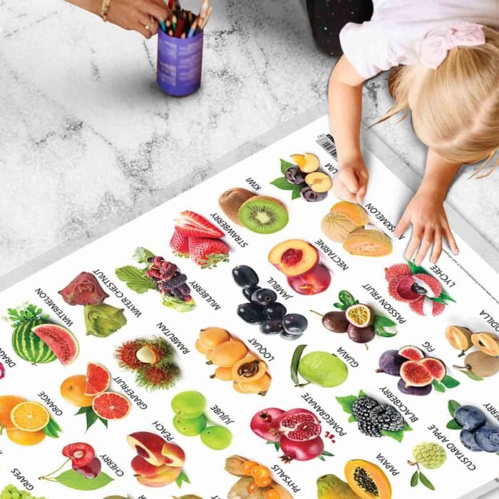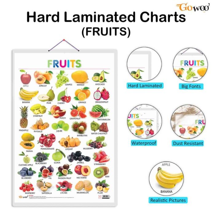 To ensure longevity and protection, the Fruits Chart comes with hard lamination. This makes it resistant to damage from moisture, dust, and scratches, ensuring that it remains a beautiful and functional addition to any room for years to come