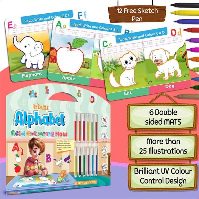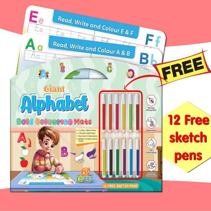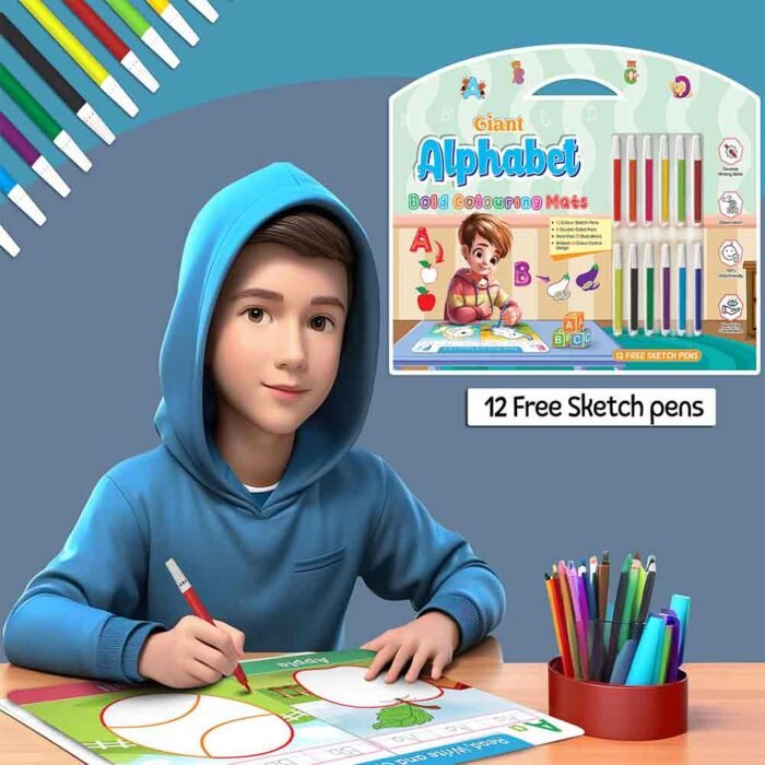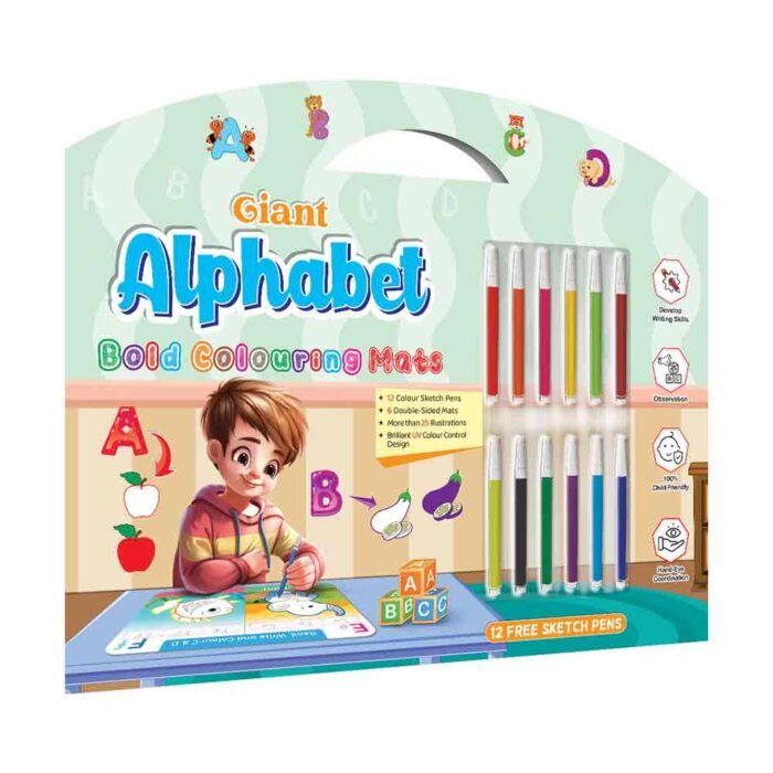 GoWoo presents the Giant Alphabet Bold Coloring Mat ? an exciting and educational tool designed to ignite creativity and learning in children!This oversized coloring mat features bold and vibrant illustrations of the entire alphabet, providing children with a fun and engaging way to learn their letters. Measuring large enough for ample coloring space, this mat offers plenty of room for children to explore and express their creativity.Included with the mat are 12 free sketch pens, giving children a rainbow of colors to bring their creations to life.