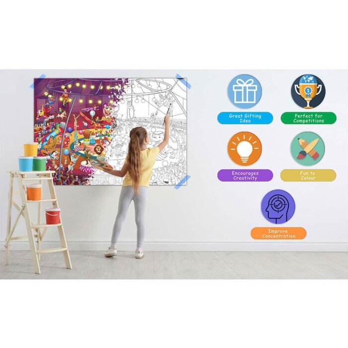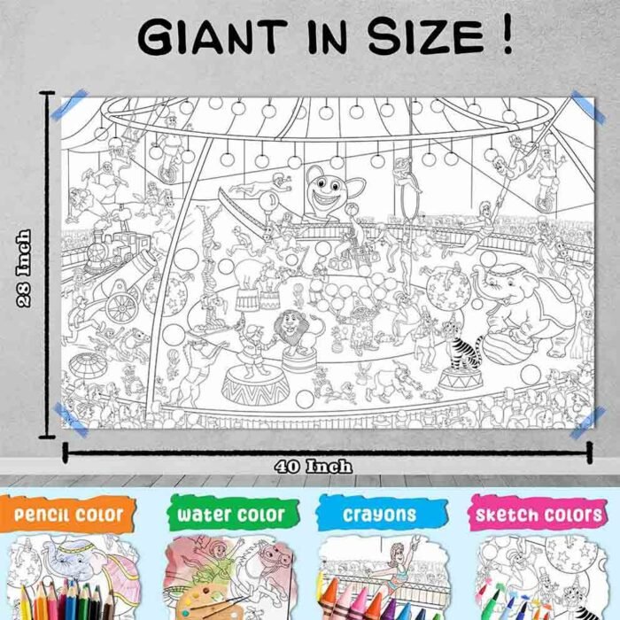 Step right up to the “Giant Circus Colouring Poster” ? a thrilling canvas of imagination and creativity. This expansive 20″ by 30″ poster captures the magic of the circus with intricate illustrations of acrobats, clowns, animals, and more. It provides ample room for artists of all ages to add their own vibrant colors and bring the circus to life. Let your creativity run wild as you transform this poster into a vibrant spectacle of color and joy. Perfect for individual or group coloring, the “Giant Circus Colouring Poster” promises hours of entertainment and artistic exploration. Experience the excitement of the circus like never before!