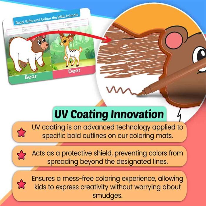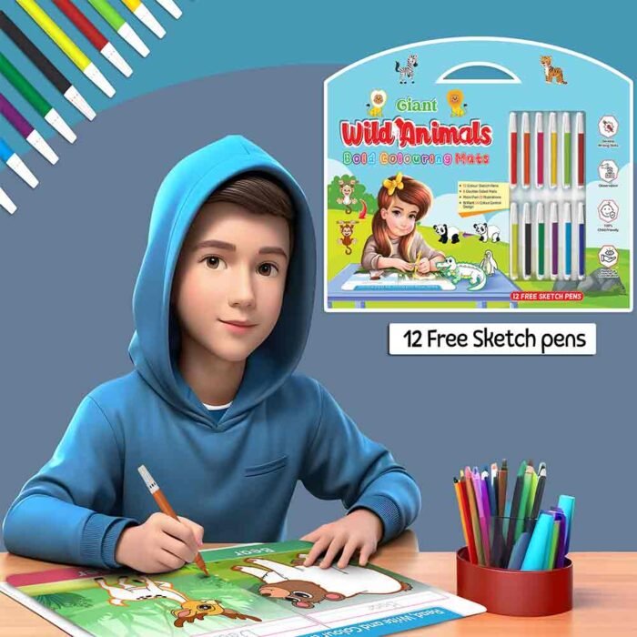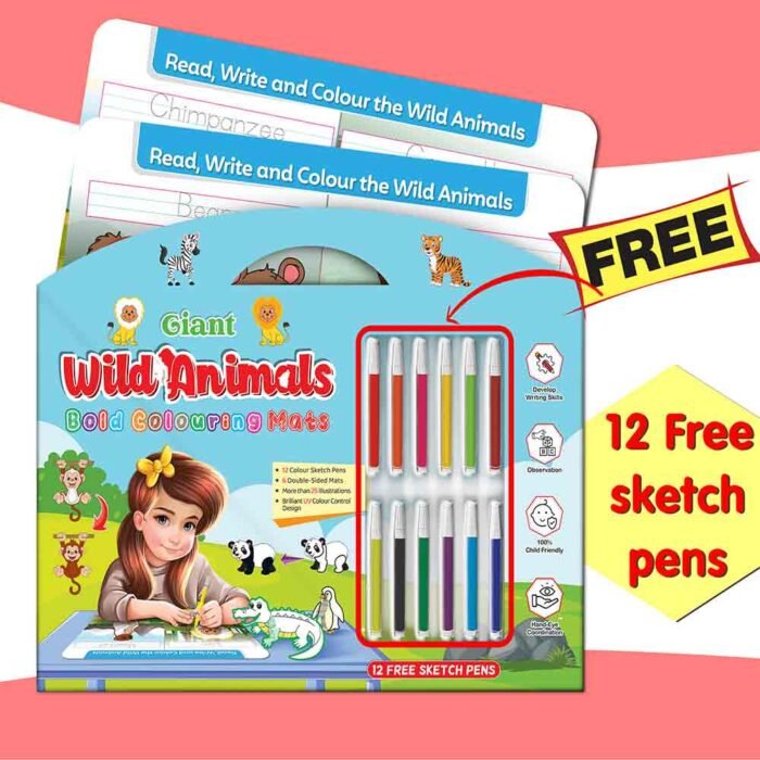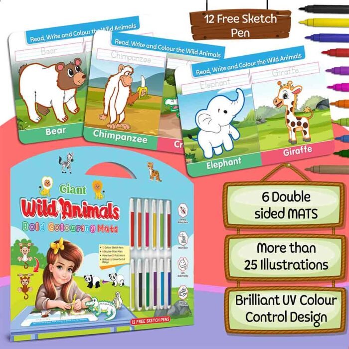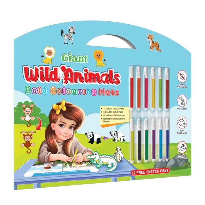 GoWoo proudly presents the Giant Wild Animals Bold Coloring Mat ? an exciting and educational tool designed to spark creativity and learning in children!This oversized coloring mat features bold and captivating illustrations of various wild animals, including lions, elephants, giraffes, and more. With ample coloring space, this mat offers children the opportunity to immerse themselves in the world of wildlife and express their creativity freely.Included with the mat are 12 free sketch pens, providing children with a colorful palette to bring their wild animal creations to life.