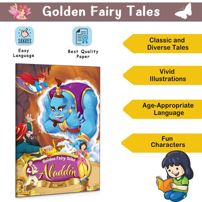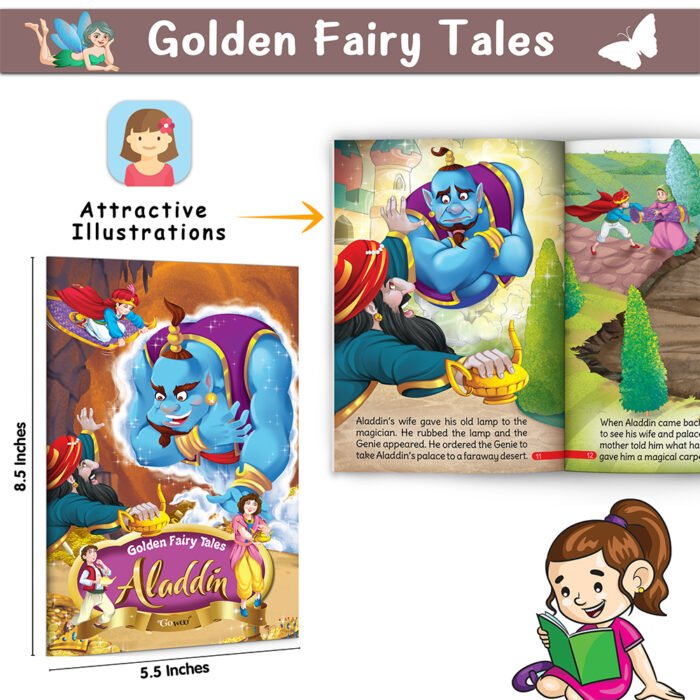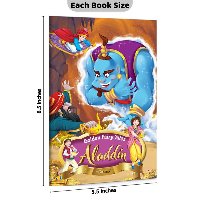 Golden Fairy Tales: Aladdin is a delightful retelling of the timeless classic, crafted to captivate young readers. Measuring a handy 8.5 x 5.5 inches, this compact book is perfect for little hands to hold and explore. Journey through the magical world of Aladdin as he discovers the enchanted lamp, befriends the powerful genie, and outwits the wicked sorcerer. The engaging narrative is complemented by vibrant illustrations, bringing the enchanting tale to life. Whether read aloud or enjoyed independently, this book promises to ignite imagination and instill a love for storytelling in every child.