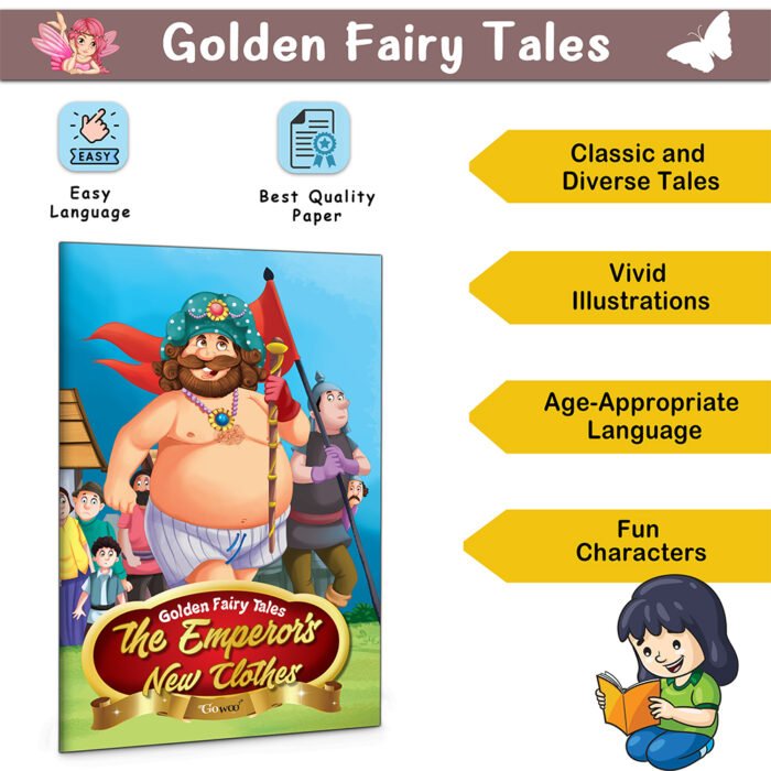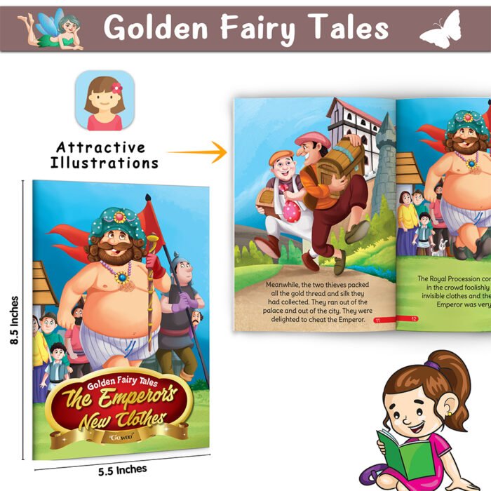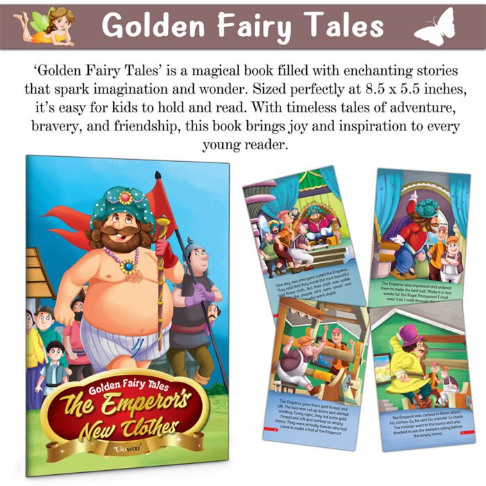 Golden Fairy Tales: The Emperor?s New Clothes by Gowoo (8.5 x 5.5 inches) offers a timeless retelling of the beloved classic, blending humor, wit, and a valuable life lesson. This beautifully illustrated book captivates young readers with its engaging narrative about vanity, deception, and the courage to speak the truth. Designed in a compact size, it is perfect for little hands to hold and enjoy during storytime or on the go. Whether read aloud or independently, this enchanting tale sparks imagination while teaching children the importance of honesty and critical thinking. A delightful addition to any child’s collection!