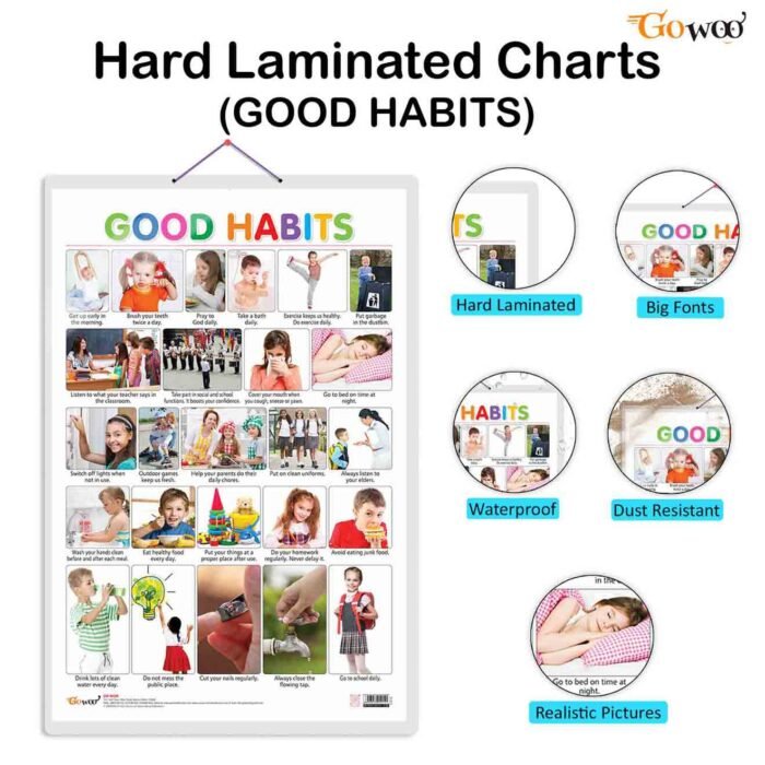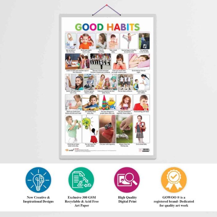 The Good Habits Chart is designed to be educational and engaging, making it an excellent visual aid to reinforce good habits and behaviours. It is 20″x30″ in size, Non-Tearable and Waterproof, Double Sided Laminated, making it durable and long-lasting, ensuring it can withstand daily use. The chart is perfect for classrooms, homes, and other educational settings.