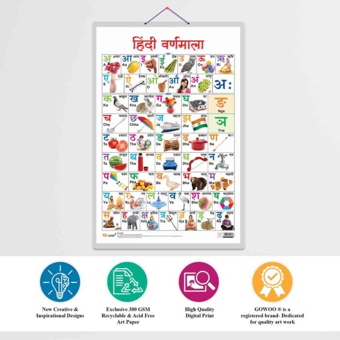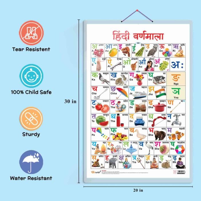 The Hindi Varnamala chart is designed to be user-friendly and contains all 49 Hindi alphabets, including mantras and conjuncts, with easy-to-understand illustrations. The chart’s vibrant colours and attractive design will make learning the Hindi alphabet fun and interactive for your child.