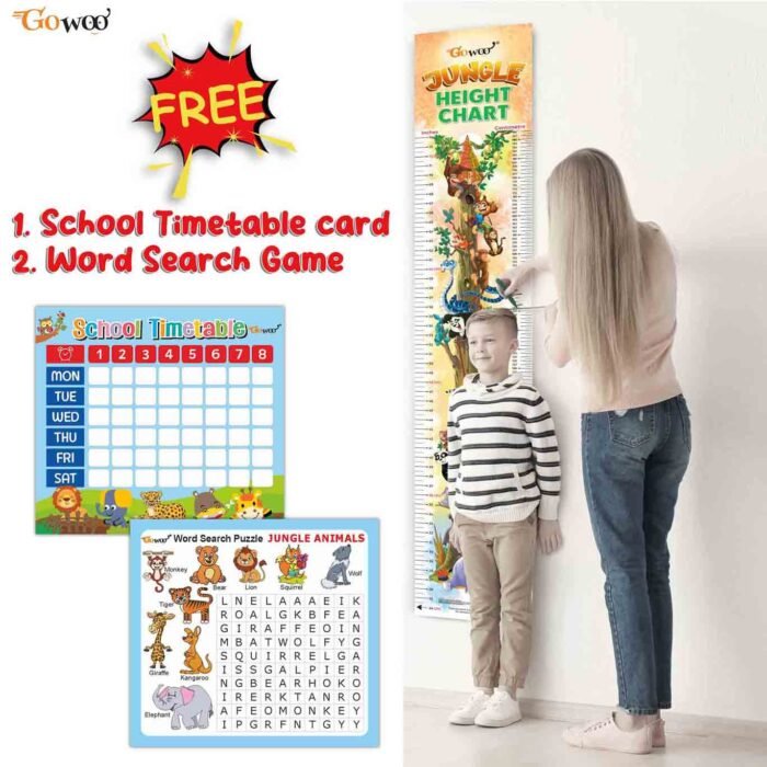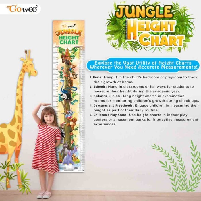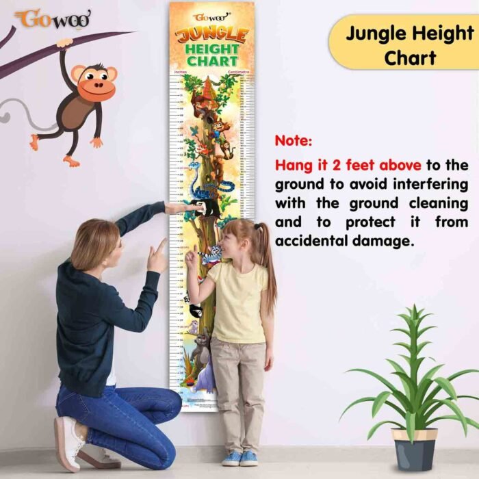 Get ready for an exciting adventure with the Jungle Height Chart provided by Gowoo. Its sizes 11″x62″ .This unique chart brings the captivating world of the jungle into your child’s room, creating a dynamic and engaging way to track their growth while immersing them in the wonders of nature.