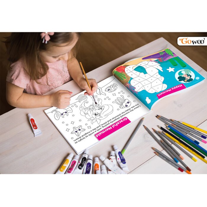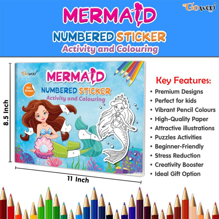 Dive into an enchanting underwater adventure with the ‘Mermaid Numbered Sticker Activity and Colouring Book’ by GOWOO! Designed for children aged 3 and above, this delightful book combines the joy of sticker play, creative coloring, and early learning in one exciting package. With over 150 vibrant stickers featuring charming mermaids, colorful sea creatures, and magical underwater scenes, children will embark on a journey filled with imagination and discovery. Each sticker is numbered, adding an educational element to the fun, allowing young ones to match the stickers to corresponding scenes, enhancing their number recognition skills as they go. Measuring at 11 x 8.5 inches, this beautifully illustrated book offers plenty of space for little hands to explore and create. The sturdy pages ensure durability, perfect for little ones who love to immerse themselves in creative play. Whether they’re decorating underwater scenes with stickers, coloring in captivating illustrations, or learning through play, children will delight in the endless possibilities this book has to offer. Let their imaginations soar as they dive into the magical world of mermaids and sea adventures with the ‘Mermaid Numbered Sticker Activity and Colouring Book’ by GOWOO.