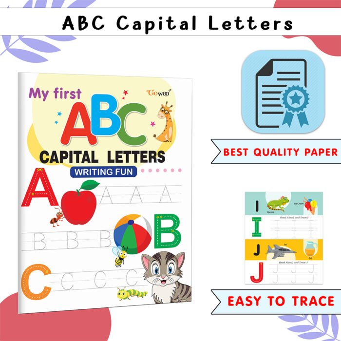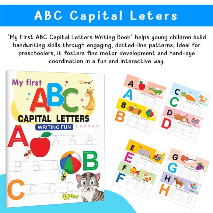 My First ABC Capital Letters by Gowoo is an educational and engaging book designed to introduce young learners to uppercase letters. Measuring 11 x 8.5 inches, it provides a spacious layout perfect for practicing writing and recognizing the alphabet. Each page features large, clear letters and fun activities to help children develop their handwriting skills and letter recognition. This book is an excellent tool for early learning, fostering confidence and making the journey to literacy enjoyable