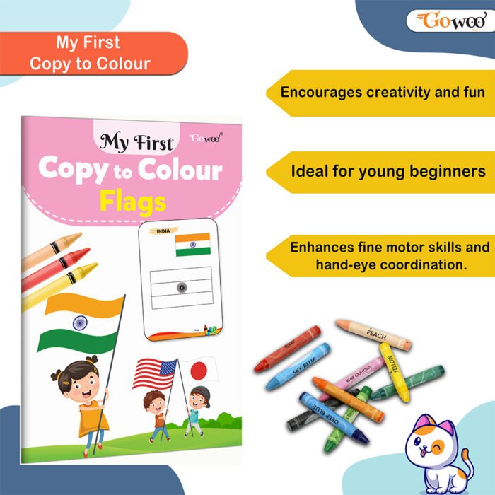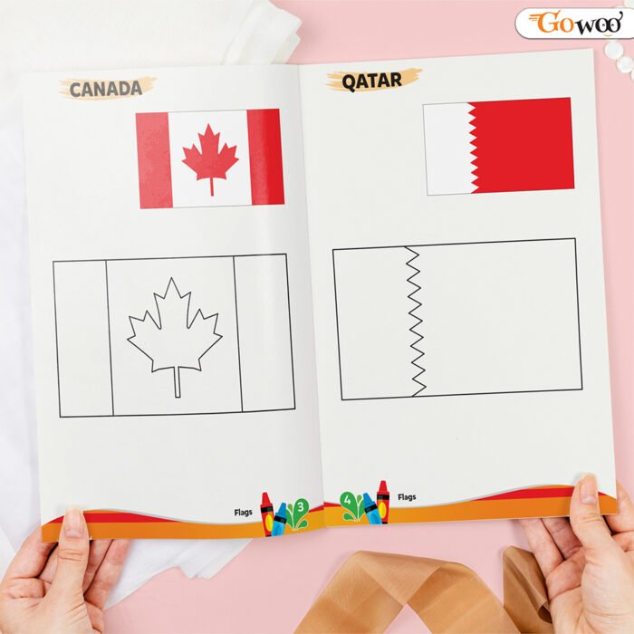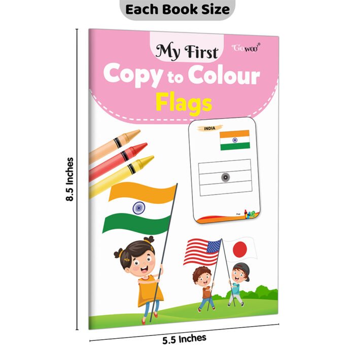 My First Copy To Colour Flags by Gowoo is a compact and engaging coloring book designed to introduce children to the flags of the world. Measuring 8 x 5.5 inches, it’s perfectly sized for small hands, making it easy to carry and use anywhere. This book combines fun and learning by allowing kids to copy and color national flags while exploring the unique designs and colors of different countries. It’s an excellent way to spark curiosity about geography and cultures in a creative and interactive way.