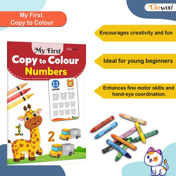 My First Copy to Colour Numbers by Gowoo is a fun and educational coloring book designed to help young learners explore numbers in an interactive way. Compact at 8.5 x 5.5 inches, it?s the perfect size for little hands, making it easy to carry and use anywhere. Each page features bold, easy-to-trace number outlines paired with engaging illustrations, encouraging kids to trace, copy, and color while building early number recognition and fine motor skills. This book makes learning numbers an enjoyable and creative experience, ideal for preschoolers and early learners embarking on their numerical journey.
