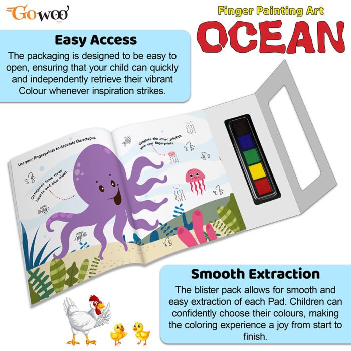 The OCEAN – Fingerpainting and Colouring Art by Gowoo is a fun-filled activity book that takes children on an artistic journey beneath the waves. Bursting with charming ocean-themed illustrations, this book encourages kids to bring marine creatures and underwater scenes to life through fingerpainting and coloring. With large, easy-to-color designs and bold outlines, it?s perfect for little hands to explore their creativity while improving fine motor skills. Ideal for preschoolers, this book combines imaginative play with learning, making it a wonderful way to introduce young minds to the vibrant world of the ocean.