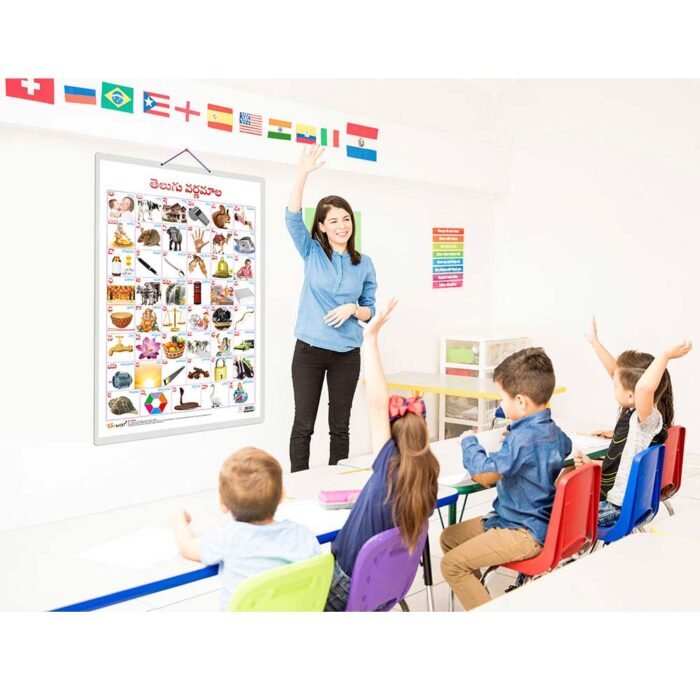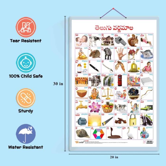 Introduce your child to the captivating Telugu language with our Telugu Alphabet chart. This chart is the perfect learning tool, measuring a convenient 20″x30″ inches and designed for homeschooling, kindergarten, and nursery students.