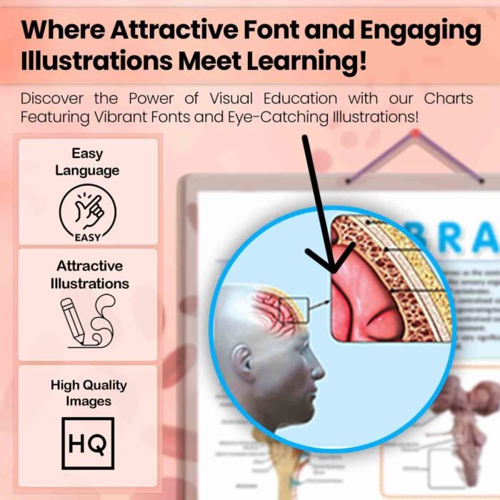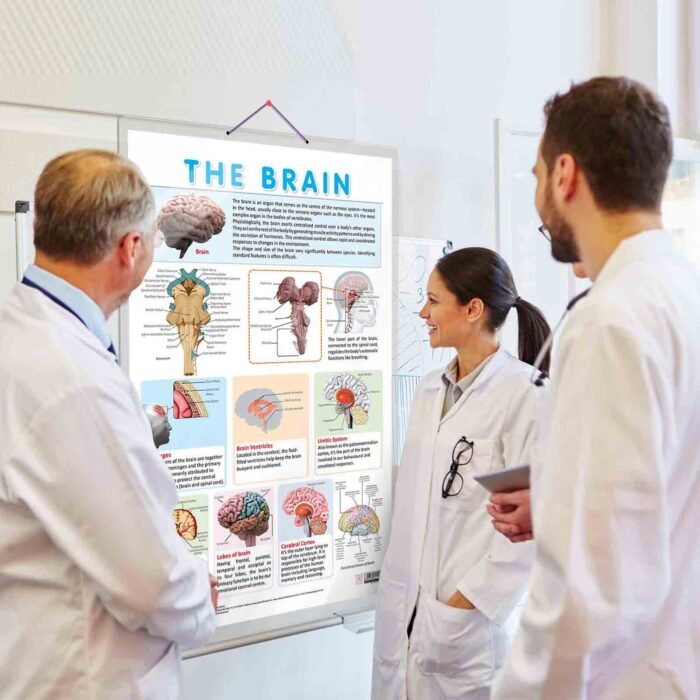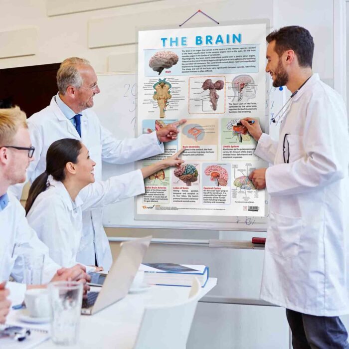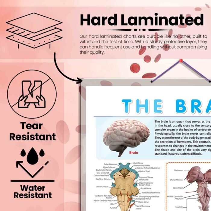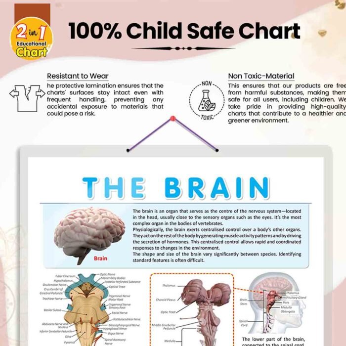 GOWOO presents THE BRAIN CHART in 20″ x 30″ inches. Unravel the complexities of the human brain with our informative chart, meticulously crafted to offer comprehensive insights. This educational resource presents detailed illustrations of the brainstem, accompanied by clear labelling names for easy identification of essential structures. The chart delves into the remarkable role of the meninges, brain ventricles, limbic system, medial brain arteries, lobes of the brain, and cerebral cortex in supporting brain function and cognitive processes. Medical students and neuroscience enthusiasts will gain a profound understanding of these essential brain regions’ intricate anatomy and physiology. Designed to inspire a passion for scientific inquiry, this chart ignites curiosity among learners. Its high-quality diagrams ensure clarity and accuracy, making it a reliable study aid for classrooms and study spaces. As learners delve into the intricacies of the human brain, they will develop a profound appreciation for the marvels of neuroscience and the essential role of the brain in governing human thought, emotion, and behaviour.