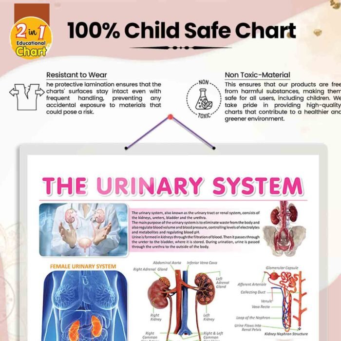 GOWOO presents the chart of the Urinary system with the size of 20″ x 30” inches. Empower young minds with the knowledge of their own bodies using our meticulously designed educational chart focused on the urinary system. Specifically tailored for children, this chart is an indispensable tool for clinics, labs, and educational institutions seeking to enrich young learner’s understanding of human anatomy.