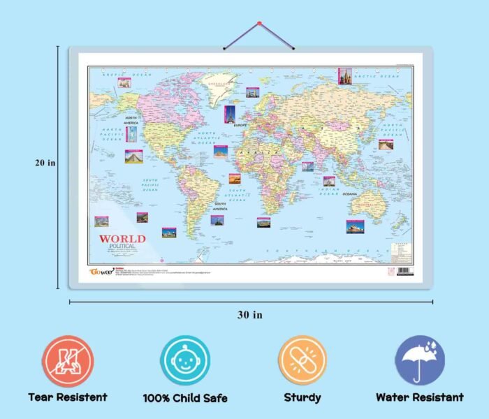 The map presents a clear and easily understandable depiction of the political boundaries of countries worldwide. It serves as a visual guide that helps students comprehend our planet’s geography and political divisions in a straightforward and engaging manner.